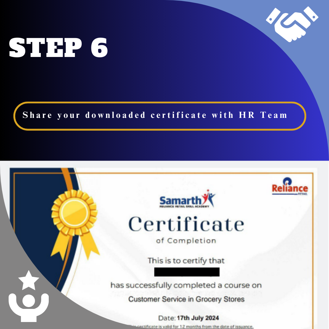 Complete the right Pre Assessment and Certification on Samarth. Eg, if you are applying for Groceries, please complete the certification on Customer Service at Grocery Store. In case, you are applying for Fashion & Lifestyle, you need to complete the certification- Customer Service at Fashion & Lifestyle.